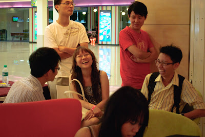 6. after that, we went up to prepare for ck's contest. warm up was at red box just beside the sense cafe. then he had to sit in front and wait for his turn. so lonely...